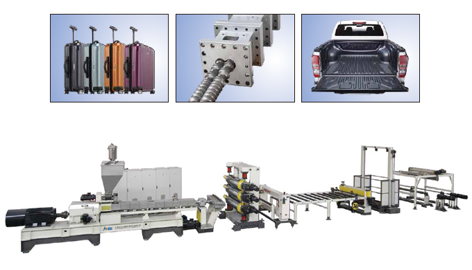Adopt building block type co-rotating parallel twin screw extruder,which can compound material and produce the sheet by one step