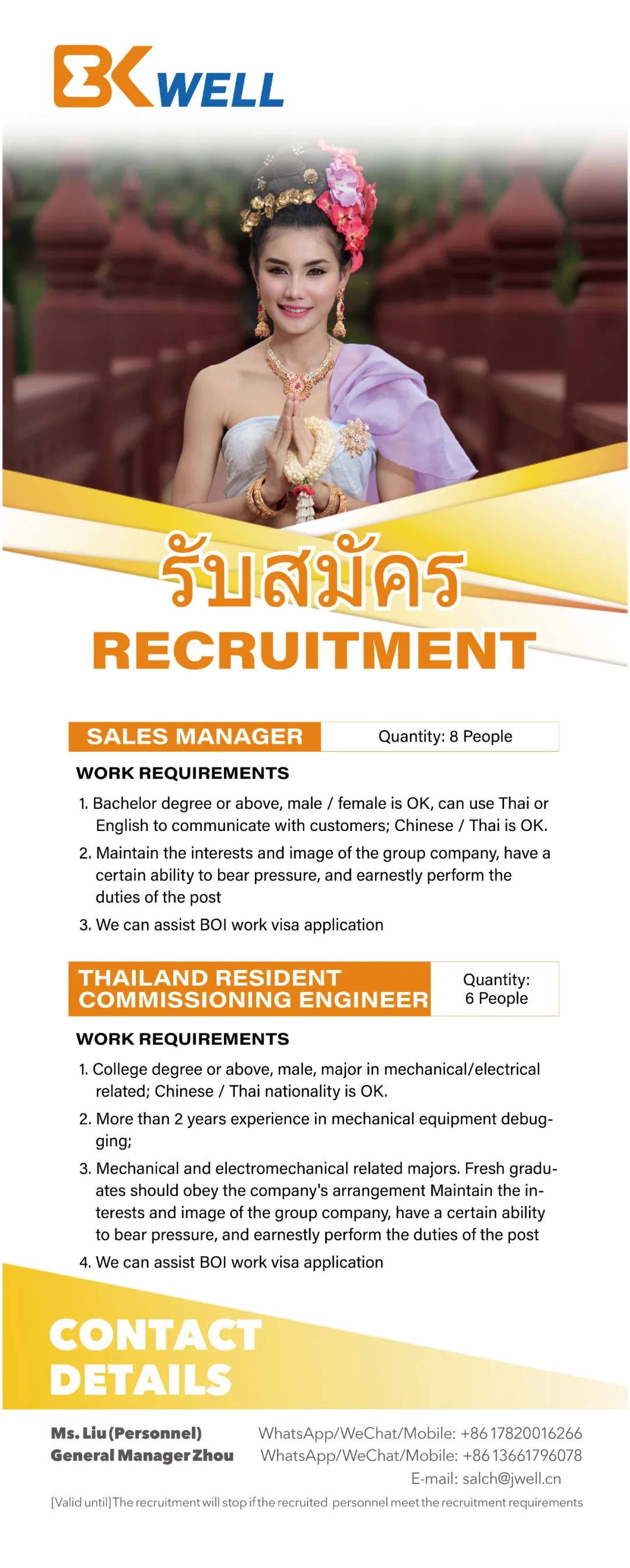 還在等什么?2022年泰國貝克威爾公司招聘已經正式開啟啦!